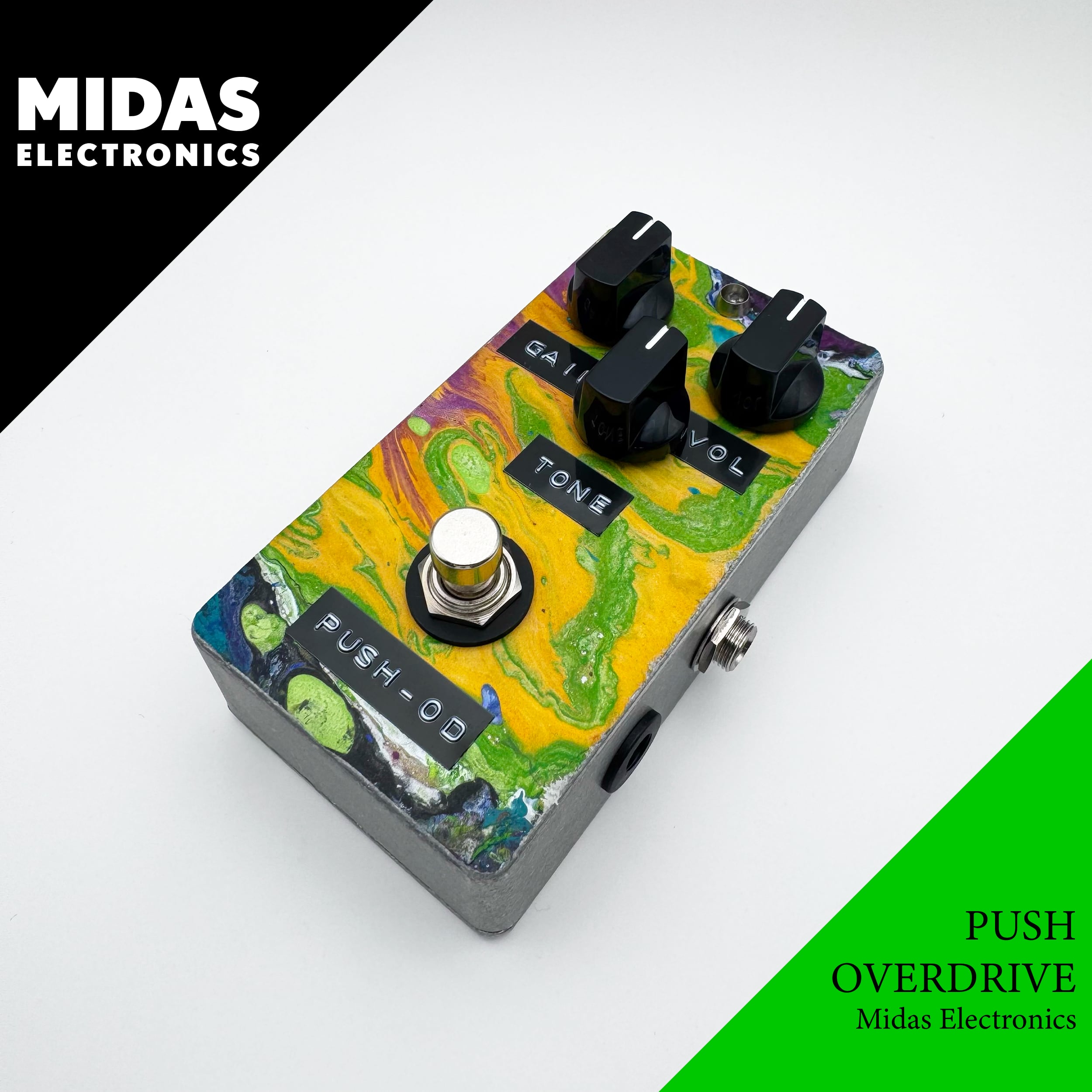 PUSH OVERDRIVEは、クランチの軽快さとディストーションの厚みのちょうど中間に位置する、表現域の広いペダルです。