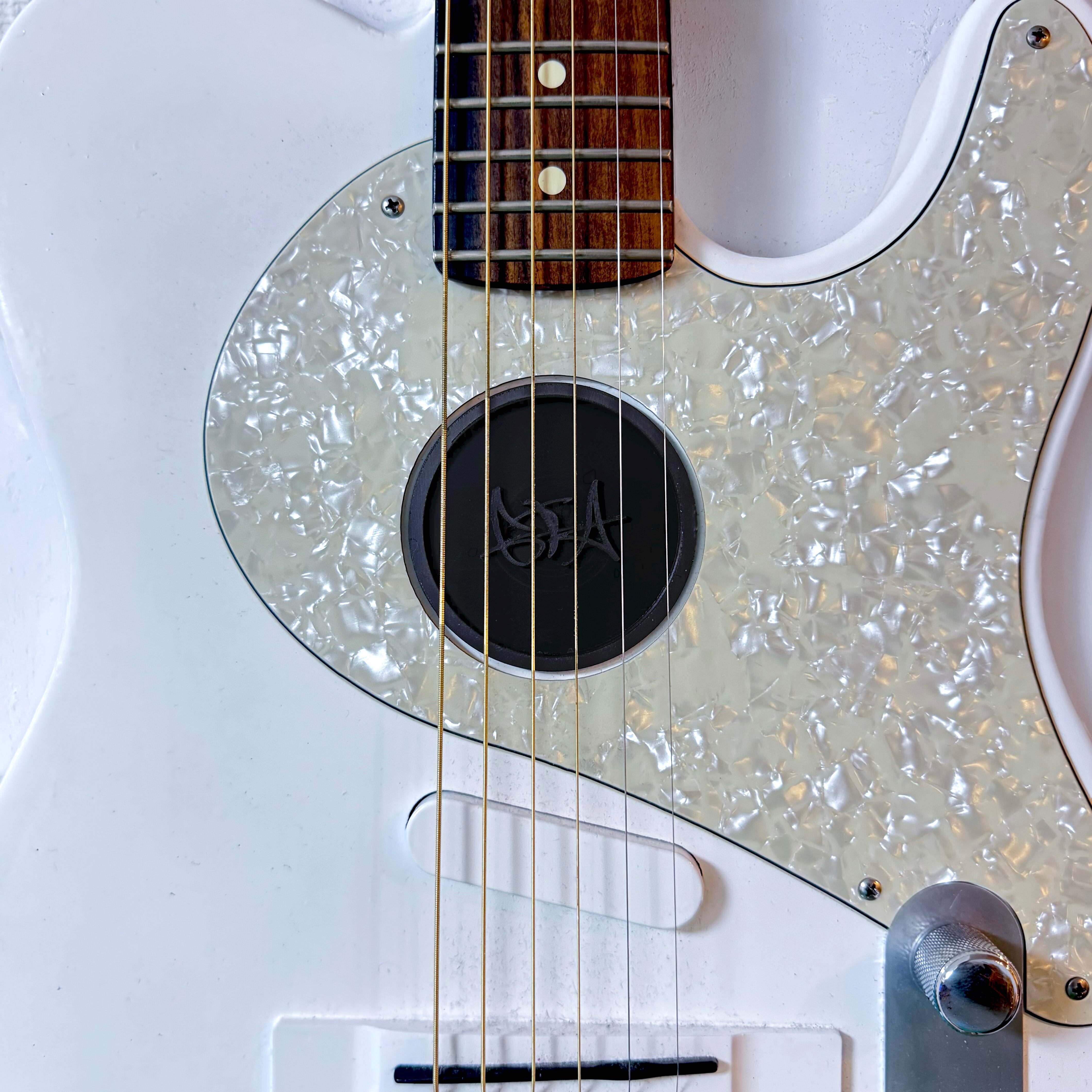 白モデルスタイルとして再現したサウンドホールカバーです。